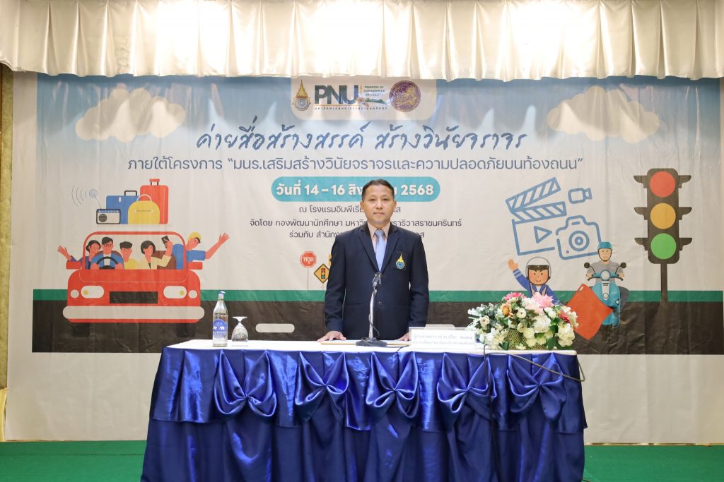 วันที่ 14 สิงหาคม 2568 ผู้ช่วยศาสตราจารย์ ดร.ปรีชา สะแลแม อธิการบดีมหาวิทยาลัยนราธิวาสราชนครินทร์ เป็นประธานในพิธีเปิดกิจกรรมค่ายสื่อสร้างสรรค์ สร้างวินัยจราจร ภายใต้โครงการ “มนร.เสริมสร้างวินัยจราจรและความปลอดภัยบนท้องถนน” โดยมี ผู้ช่วยศาสตราจารย์วันชัย แก้วหนูนวล รองอธิการบดีฝ่ายกิจการนักศึกษามหาวิทยาลัยนราธิวาสราชนครินทร์ กล่าวถึงวัตถุประสงค์ในการจัดกิจกรรมดังกล่าว ซึ่งจัดขึ้นโดยกองพัฒนานักศึกษา มหาวิทยาลัยนราธิวาสราชนครินทร์ ร่วมกับสำนักงานขนส่งจังหวัดนราธิวาส